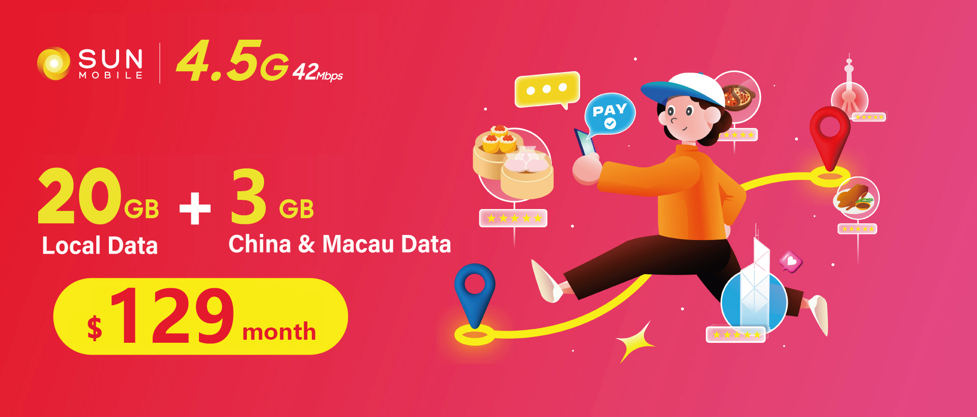 - 4.5G 42Mbps 20GB Local Data