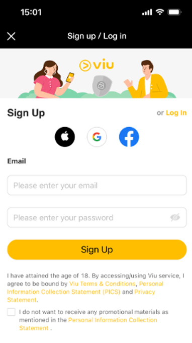 1. Open the Viu app, tap the menu in the upper left-hand corner and choose “Login”.